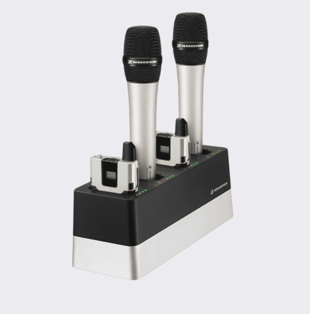 The CHG 4N is a network enabled charger featuring four indiviual charging bays. These can either be used for the SL Bodypack DW or the SL Handheld DW. Each bay is combined with 4 LEDs to indicate the corresponding battery status of the mobile device. The flexible network interface provides IPv4 and IPv6 compatibility for seamless integration. All settings and status information can be monitored and remote controlled with the Sennheiser Control Cockpit.
